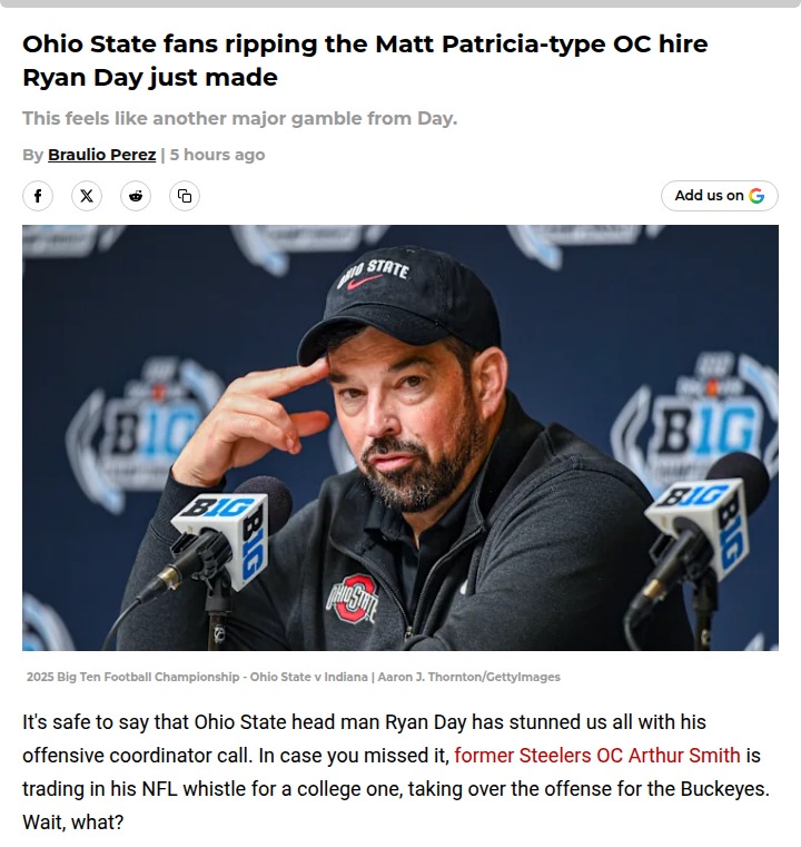 Chad Williams+FollowOhio State fans react to Arthur Smith hireRyan Day just made a bold move by bringing in Arthur Smith, the former Steelers and Falcons coach, as Ohio State’s new offensive coordinator. Fans are buzzing—some worried, some curious—since Smith’s NFL background and run-heavy style feel like a big shift for the Buckeyes. Remember how skeptical everyone was about Matt Patricia last year? That worked out better than expected. Maybe Smith’s experience will spark a new look for the offense, especially with talents like Julian Sayin and Jeremiah Smith ready to shine. Is this a risky call or a genius move? Let’s hear your thoughts! #Sports #Football #OhioState01Share