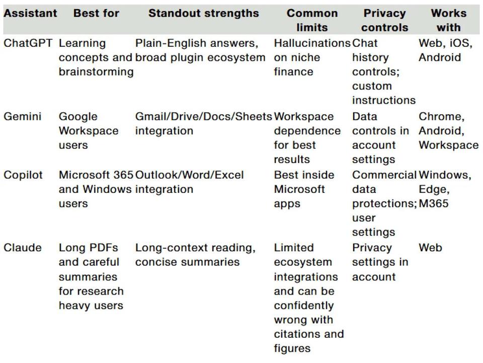 Kara Rosario+FollowWhich AI Assistant Wins at Money Management?Let’s talk about the real-world strengths and gaps of AI personal finance assistants. ChatGPT is a champ at breaking down financial concepts, while Gemini is a dream for Google power users. Copilot fits seamlessly with Microsoft tools, and Claude shines at digesting long documents. But here’s the kicker: none are perfect for personalized advice, and privacy is a real concern. Would you trust an AI with your budget, or is human expertise still king? #Tech #AI #PersonalFinance00Share