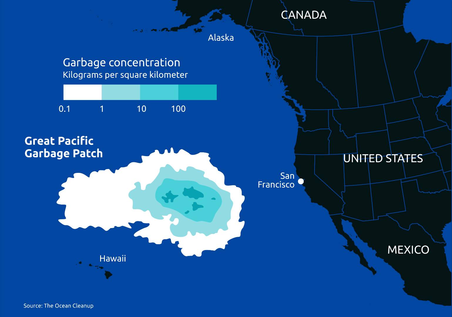Twice the Size of Texas: The Pacific Garbage Patch The Great Pacific Garbage Patch is the largest collection of plastic in the ocean, but it is not a solid island of trash. It spreads across 620,000 square miles, about twice the size of Texas, in a floating web of debris carried by the North Pacific Subtropical Gyre between California and Hawaii. Scientists estimate it contains 79,000 to 87,000 tons of plastic, spread across 1.8 trillion pieces. Most of the pieces are tiny: microplastics smaller than 0.2 inches make up 94% of the pieces but only 8% of the weight. Bigger plastics over 2 inches, including hard plastics and discarded gear, make up over 75% of the weight, with lost fishing nets, ropes, and lines alone at 46%. About 80% of the plastic comes from land, including rivers, coastal trash, and poorly managed landfills, while 20% comes from ships and fishing boats. Much of it comes from Asian countries like China, Indonesia, the Philippines, and Japan. Debris from the 2011 Tohoku tsunami makes up about 20% of the larger trash. The patch is constantly moving. Currents carry debris from the surface to hundreds of meters deep, and studies show plastic concentrations in some areas exceed 1 million pieces per square kilometer. Multi-year monitoring reveals the total mass of plastic has grown by around 100% since the early 2000s, and microplastics now account for billions of pieces that penetrate marine food chains, including fish consumed by humans. Despite its size much plastic still sinks or drifts, meaning the patch represents only a fraction of global ocean plastic. Looking ahead, the patch is projected to expand as global plastic production rises, with an estimated 12 million tons entering oceans annually worldwide. Cleanup efforts are underway: projects like The Ocean Cleanup have removed over 100,000 pounds of plastic in pilot operations, and floating barriers and targeted microplastic filtration. #PlasticPollution #PlasticWaste #Pacific #OceanPollution