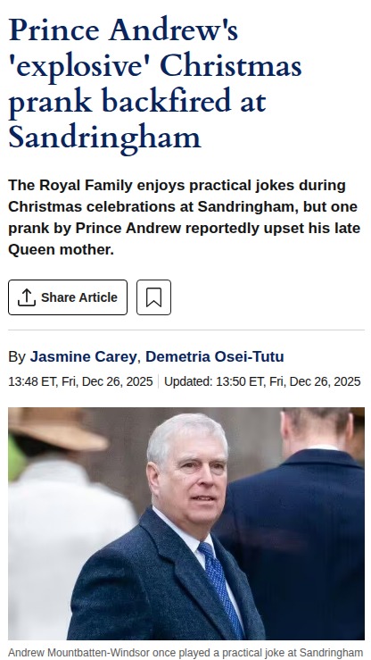 xpotter+FollowPrince Andrew’s Xmas Prank Chaos 🎄Did anyone else hear about Prince Andrew’s infamous Christmas prank at Sandringham? Apparently, he swapped out walnuts for ones stuffed with mini-explosives, and the Queen Mother was NOT amused when they went off at the dinner table! Some say this was the beginning of his fall from royal grace. Was it just a harmless joke, or did he cross a line? The debate is real! #Entertainment #Celebrity #PrinceAndrew00Share