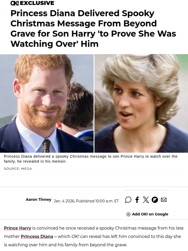 xpotter+FollowDiana’s Ghostly Xmas Message to Harry? 👻Prince Harry claims he got a spooky Christmas message from Princess Diana through a psychic after Archie broke a royal ornament. He’s convinced it’s proof his mom is watching over him, even years after her tragic death. Some fans think it’s touching, others say it’s just another Sussex publicity move. Is Harry really connecting with Diana, or is this just more royal drama? The fandom is divided! #Entertainment #Celebrity #PrincessDiana168Share