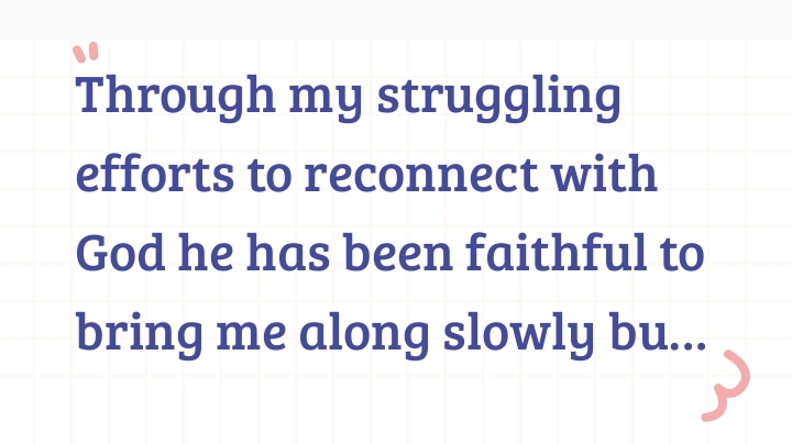 Through my struggling efforts to reconnect with God he has been faithful to bring me along slowly but sure #Psalms_37_5