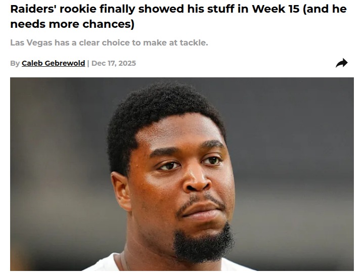 John Camacho+FollowLas Vegas rookie Charles Grant deserves more snapsCharles Grant finally got his shot on the field for the Raiders in Week 15, and he made it count with a standout block that had everyone talking. Despite the team’s ongoing struggles and a season that’s basically over, the coaching staff has been slow to give rookies like Grant real opportunities. It’s tough to watch veterans keep their spots while rookies with potential ride the bench. At this point, why not let Grant play more and see what he can do? If he shines, that’s one less problem to solve next year. What do you think—should the Raiders let the rookies take over? #Sports #Football #Raiders10Share