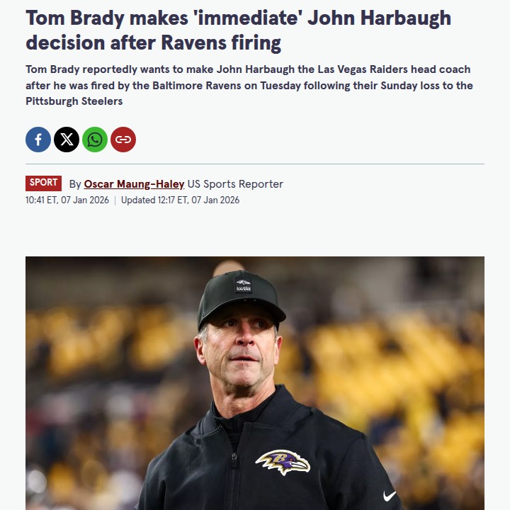 Jeffrey Armstrong+FollowBrady Eyes Harbaugh for Raiders RebuildWow, Raider Nation, things are heating up fast! King Brady is reportedly pushing to bring in John Harbaugh—fresh off his Ravens exit—to take over in Vegas. After that wild ending against the Steelers and Harbaugh’s emotional sideline moment with Tyler Loop, it’s no surprise teams are lining up. Could this be the move that finally turns things around for the Silver and Black? #Sports #Football #Raiders00Share