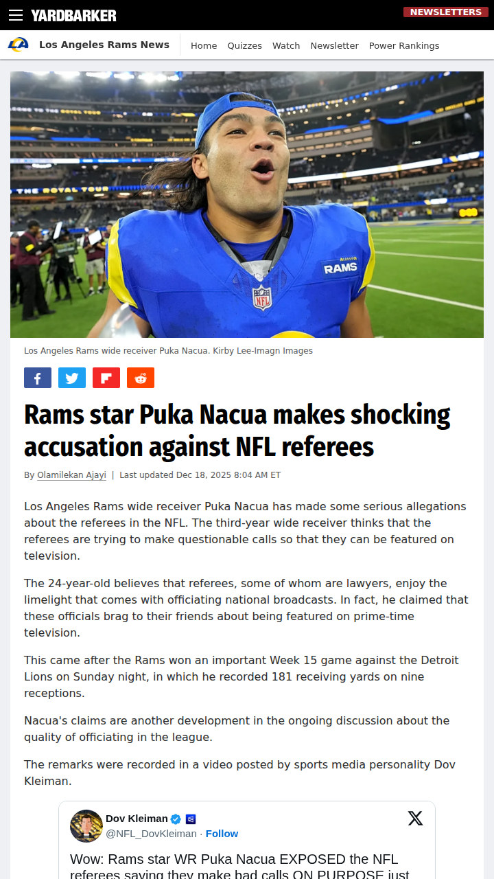 Wild and messy LA sports headline. NBC4 reports two men — Samson Nacua (Puka Nacua’s brother) and Trey Rose, both 27 — were arrested over the weekend on suspicion of taking Lakers forward Adou Thiero’s SUV without his consent, per the Los Angeles County Sheriff’s Department. Deputies reportedly tracked the vehicle to the 1 Hotel in West Hollywood, where the suspects had valeted the car and entered the hotel. After reviewing security footage, law enforcement identified them and made arrests. It’s also unclear where/when the SUV was taken and reporting notes police said it wasn’t certain the car was “stolen” in the traditional sense — but both suspects were booked on taking a vehicle without the owner’s consent and remained in custody at the time of the report. This is one of those stories where you just say: what on earth is going on. #NFL #Rams #PukaNacua #Lakers #NBA #LosAngeles #SportsNews