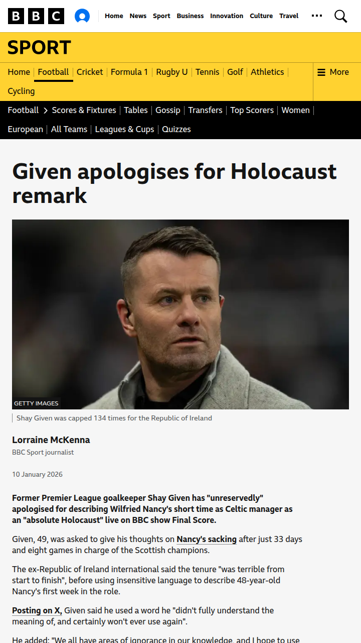 davidsonbrandon+FollowGiven’s Slip-Up After Celtic-Rangers LossBig moment on Final Score as Shay Given, the ex-Toon stopper, made headlines for all the wrong reasons after Celtic’s Old Firm defeat. Given used an inappropriate term to describe Wilfried Nancy’s short, rocky reign at Celtic Park—just 33 days, the shortest in club history. He’s since apologised unreservedly and is donating his fee to the Holocaust Educational Trust. Thoughts on how the pressure of the Rangers rivalry impacts managers? #Sports #CelticFC #Rangers00Share