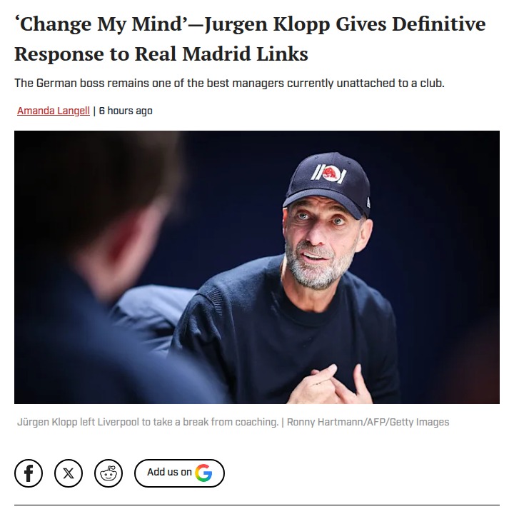 kochcandice+FollowKlopp Shuts Down Real Madrid RumorsLooks like the rumors of The Normal One heading to Los Blancos are just that—rumors. After Xabi Alonso’s short stint and Arbeloa stepping in, Madridistas were buzzing about Klopp taking the helm. But Klopp himself says he’s not coming back to the dugout anytime soon, focusing on family and a new home instead. Do you think Real Madrid should keep chasing him, or is it time to look elsewhere for their next big rivalry run against Barca? #Sports #Soccer #RealMadrid00Share