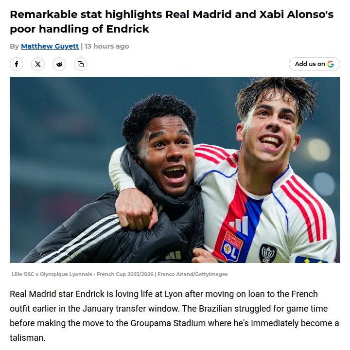 Malik Williams+FollowDid Los Blancos Blow It With Endrick?Watching Endrick light it up at Lyon has me wondering if Los Blancos made a huge error letting him go, even on loan. The kid’s already got a goal, an assist, and a record nine dribbles in just two games! With Madrid’s attack lacking that spark, it’s tough not to think Xabi Alonso and the board missed a trick. Endrick’s creativity and fearlessness are exactly what we’re missing at the Bernabeu right now. Anyone else frustrated seeing him thrive elsewhere? #Sports #Soccer #RealMadrid00Share