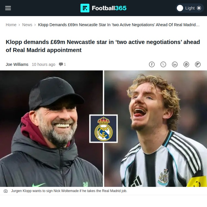 Allison Travis+FollowKlopp Eyes Real Madrid Overhaul After Barca LossAfter Los Blancos fell to Barcelona in a tense Super Cup final, rumors are swirling that Jurgen Klopp could take the reins at Real Madrid this summer. The German tactician reportedly wants a full squad shake-up, including Newcastle’s £69m striker and a new midfield maestro. With two negotiations already in motion, could we see King Klopp reshaping Madrid’s attack and possibly moving on from Vinicius Jr.? This rivalry with Barca just got a new twist! #Sports #Soccer #RealMadrid00Share