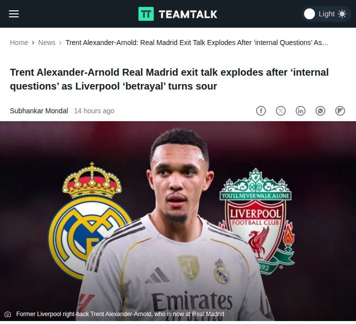 Malik Williams+FollowTrent’s Madrid Frustration: Betrayal or Blip?Looks like the saga around TAA’s move from Anfield to the Bernabeu isn’t cooling off. Madridistas and Reds alike are buzzing after reports that the Scouser’s struggling with injuries and clarity about his role at Los Blancos. Some fans are calling his Liverpool exit a betrayal, but remember how Modric turned it around after a rocky start? With Chelsea and City sniffing around, will Trent bounce back or is this another high-profile transfer headed for drama? #Sports #Soccer #RealMadrid00Share