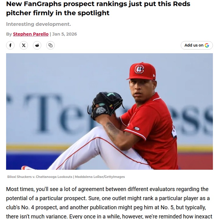 Maria Chavez+FollowReds’ Jose Franco rockets up prospect rankingsJose Franco just jumped from under-the-radar to center stage in the Reds’ system, with FanGraphs ranking him as Cincinnati’s sixth-best prospect—way higher than MLB Pipeline’s No. 24 slot. After battling injuries and a long road through the minors, Franco’s 2025 season (3.11 ERA, 9.65 K/9) has scouts buzzing about his fastball and deceptive delivery. The Reds added him to the 40-man roster, signaling big-league plans for 2026. With so many talented arms, could this shake up the Reds’ rotation or even lead to a trade? What do you think about Franco’s sudden rise? #Sports #Baseball #Reds10Share