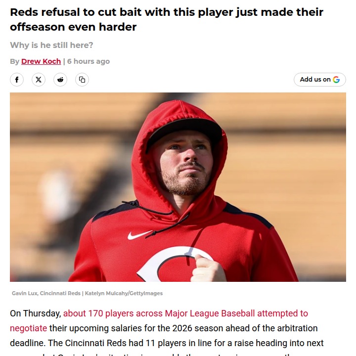 jillian59+FollowReds' gamble on Gavin Lux shakes up 2026 plansCincinnati’s decision to keep Gavin Lux on the roster for over $5 million next season is turning heads. With a tight budget and plenty of roster gaps, many fans are questioning if Lux—who struggled defensively and mostly filled in as DH—was worth the investment. This move could limit opportunities for up-and-comer Sal Stewart and restrict the team’s flexibility to address bigger needs. Will the Reds regret not reallocating those funds, or does Lux’s versatility justify the price? Let’s hear your take: smart depth move or missed opportunity? #Sports #Baseball #Reds00Share
