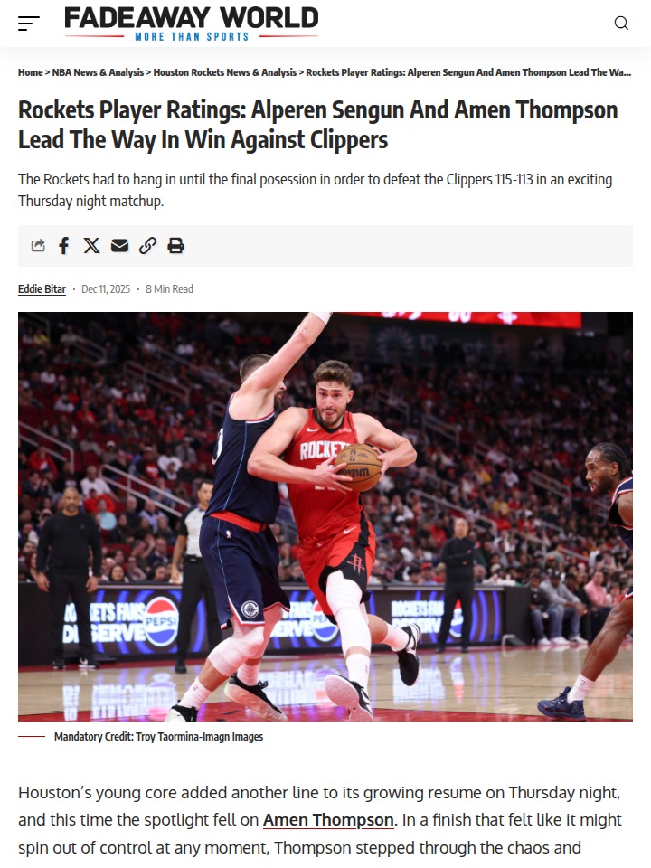 Brian Gaines+FollowRockets’ relentless rebounding stuns ClippersHouston’s young squad just put on a masterclass in hustle, grabbing a jaw-dropping 51 rebounds—more than double the Clippers’ total. The game’s turning point? Amen Thompson’s fearless putback and clutch free throw in the final seconds, sealing a wild 115-113 win. Alperen Sengun powered the team all night with 22 points and 15 boards, while Thompson nearly notched a triple-double. Even with Zubac’s near-perfect night for LA, the Rockets’ energy and teamwork made the difference. How do you see this new Rockets core shaping up against the West’s best? #Sports #Basketball #Rockets00Share
