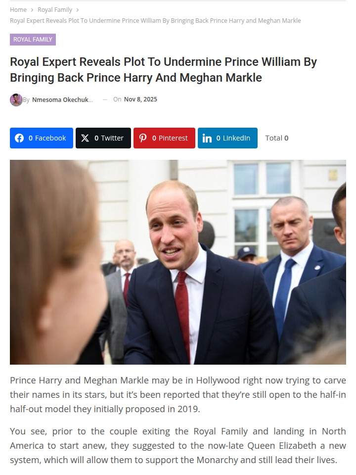 Chad Kemp+FollowProject Thaw: Meghan’s UK Comeback? 👑Royal insiders are buzzing about a secret plan called “Project Thaw” to bring Harry and Meghan back into the royal fold—supposedly to shake up Prince William’s position! Some claim Meghan’s Paris trip is just the start, and she’ll be back in Britain soon, possibly “bearing humble pie.” Is this a genuine reconciliation or a strategic move to undermine William? The fandom is totally split! #Entertainment #Celebrity #RoyalFamily1725Share