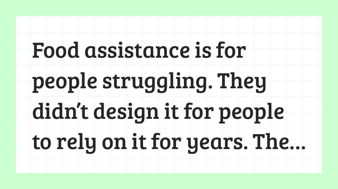 J2E+FollowFood assistance is for people struggling. They didn’t design it for people to rely on it for years. They do not look at individual cases. Take myself for example.. my hometown has become one of the most expensive places to live. Everything is high. I am a single female who pays my own bills. They do not take into consideration car payments ( who doesn’t need a reliable car?) or car insurance ( yet the state requires it) that the gas in your car to get to work and back is now up to at least $3000 a year spent now. But they say you make too much. I work for the state. In June they started taking my ASRS ( state retirement) which is $436 I am now missing per month.. because I make too much.. yeah sure It is a bunch of bullshit #SNAPBenefits #SNAPLife #SNAPTalk00Share