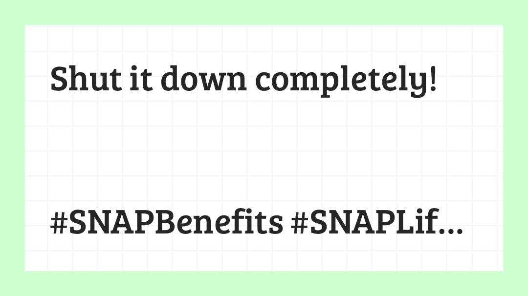 "When the government shuts down, it's not just politics—it’s people. Families like Jasmine’s are left without food, without answers, and without dignity. SNAP isn’t a luxury. It’s survival. And the government is starving its own." #SNAPBenefits #SNAPLife #SNAPTalk