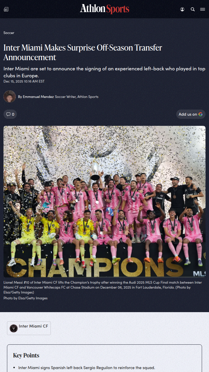 kochcandice+FollowReguilon Joins Messi & Co: Miami’s Next Move?Big news, Herons fans! Fresh off their MLS title, Inter Miami is making waves again by signing Spanish left-back Sergio Reguilon. With legends like Busquets and Alba leaving, this move brings more La Liga and Premier League experience to Messi’s squad. Reguilon, a Real Madrid product, reportedly chose Miami over other clubs—Romano says it’s a done deal. How do you see Reguilon fitting in? Will this help Miami defend their crown? Let’s hear your takes! #Sports #Soccer #InterMiami00Share