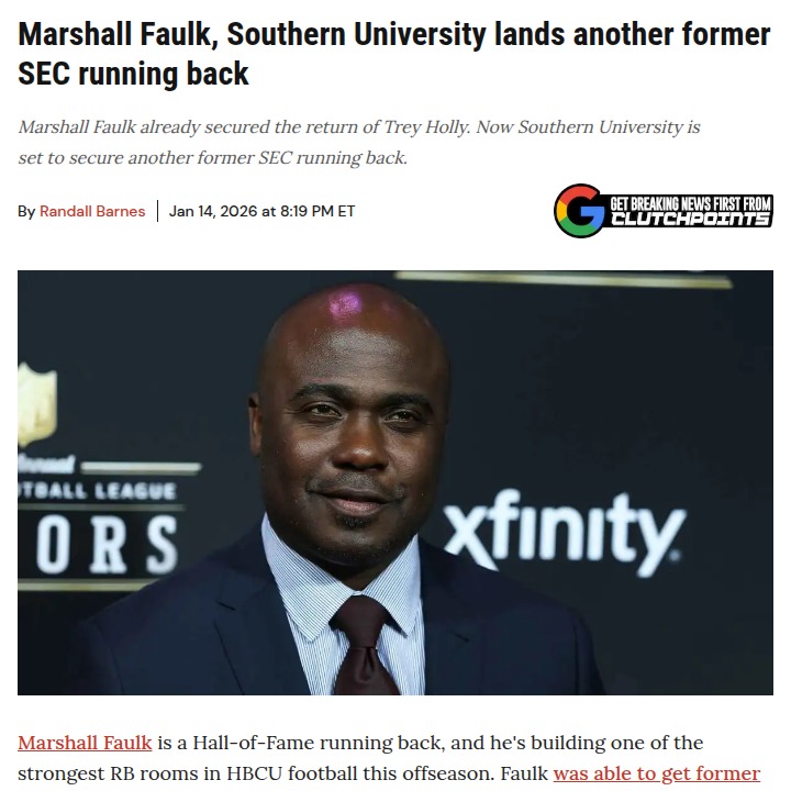Michael Pitts+FollowSouthern University’s backfield just got stackedMarshall Faulk is making big moves at Southern University, bringing in another former SEC running back to join the squad. With Trey Holly—who tore up the field last season—and now Ronnie Crosby III from Texas A&M, Southern’s running game is looking more dangerous than ever. Holly’s high school stats were off the charts, and his 80-yard touchdown last year turned heads. Now, with Crosby in the mix, Faulk’s first season as head coach could see Southern’s offense become a real powerhouse. What do you think—can this new RB duo turn the program around? #Sports #Football #SouthernUniversity00Share