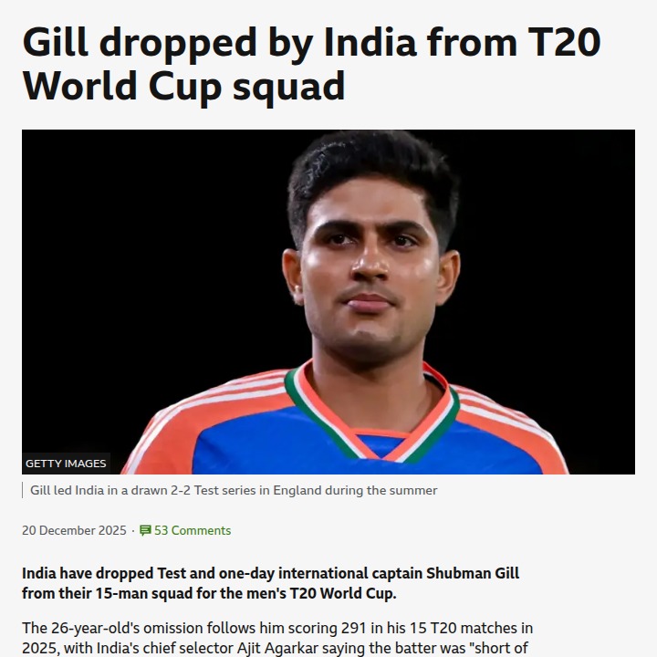 davidsonbrandon+FollowShock Drop: Prince Gill Out of T20 SquadBig news, cricket fam! India’s selectors have made a bold call by leaving out Prince Gill from the T20 World Cup squad, despite his leadership in Tests and ODIs. With Surya keeping the captain’s armband and faith from the top brass, all eyes are now on whether he can silence doubters and deliver on the big stage. What do you think—was Gill’s omission the right move, or will it haunt the Men in Blue? #Sports #T20WorldCup #TeamIndia00Share
