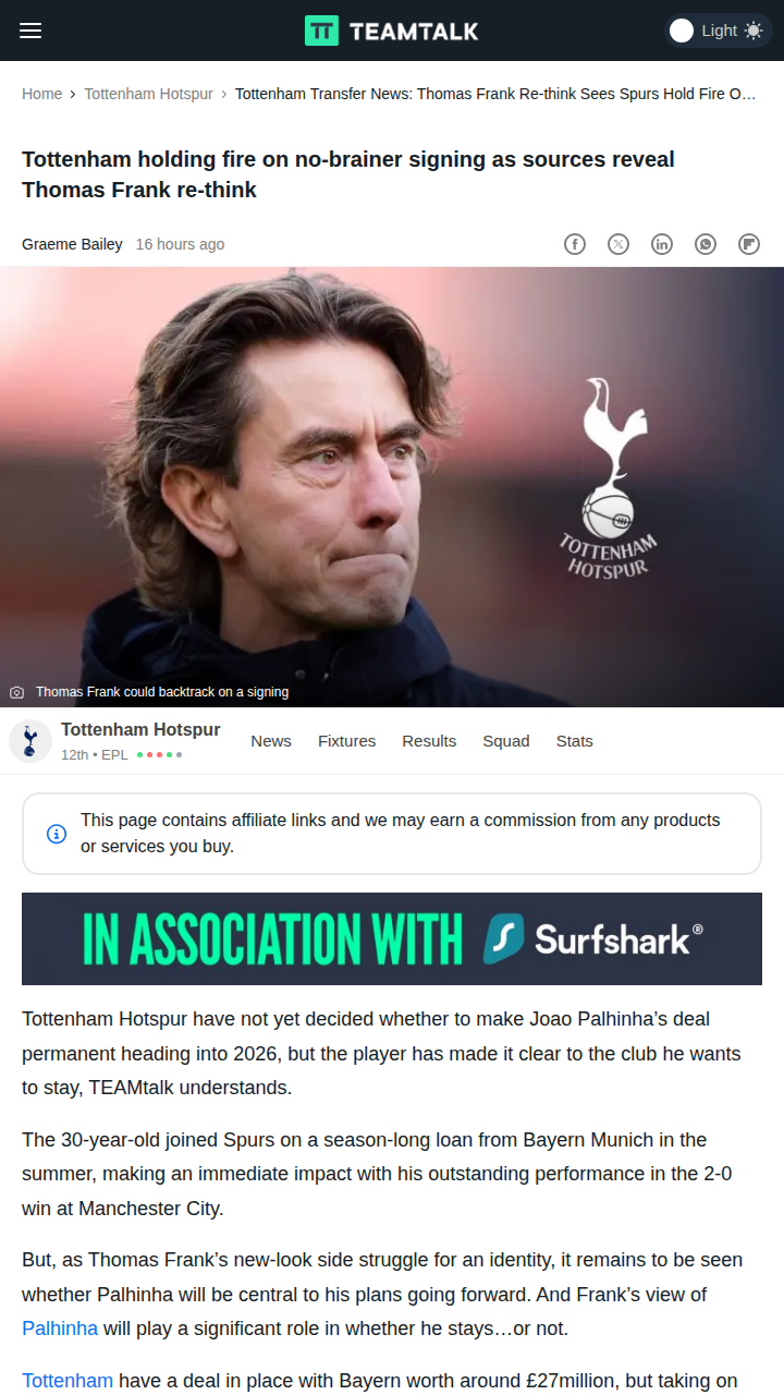 Malik Williams+FollowPalhinha’s Spurs Future: Frank’s DilemmaBig question for Spurs fans: Should we lock down Joao Palhinha for good? The Portuguese powerhouse has shown flashes—remember that City game?—but Thomas Frank’s not convinced the Bentancur-Palhinha duo works in midfield. With young guns like Bergvall and Gray pushing through, and a new midfielder rumored for January, Palhinha’s future in North London is anything but certain. What’s your take—keep him or trust the youth? #Sports #Soccer #THFC00Share