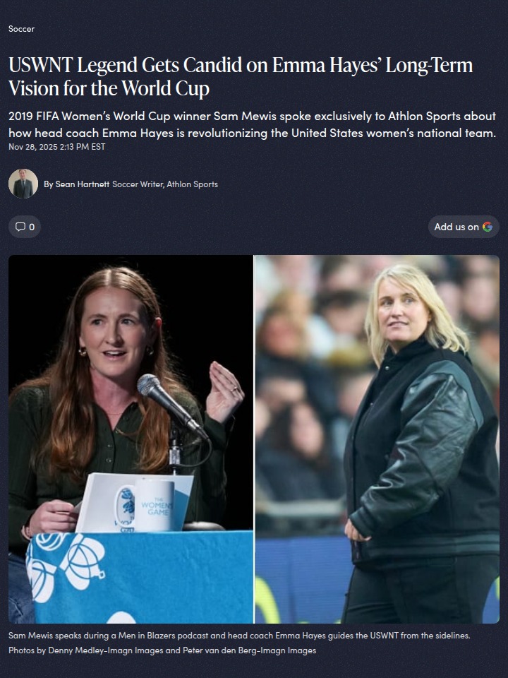 Jillian Morse+FollowHayes’ Youth Revolution: USWNT vs Italy PreviewSam “Tower of Power” Mewis just dropped some real talk on Emma Hayes’ approach with the USWNT. Hayes is all about building depth for 2027, giving 25+ players their first caps and keeping the squad fresh. With the Italy friendlies coming up, expect even more new faces to get a shot. The big question: can Hayes’ youth movement outpace Italy’s Euro semifinalists? Loving the positive vibes and freedom on the pitch under Hayes—this is a new era for the Stars and Stripes! #Sports #Soccer #USWNT10Share