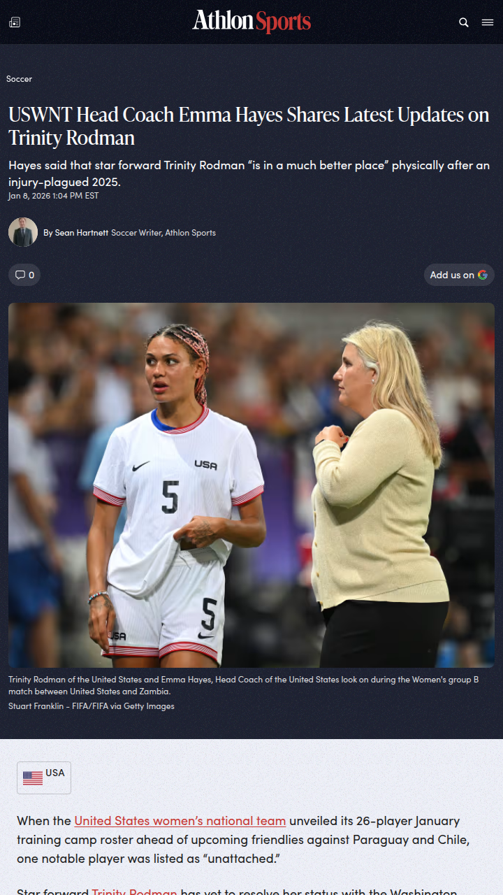 Maurice Miller+FollowTrinity Rodman’s USWNT Call-Up: Right Move?Even with her club future up in the air, Trin is headed to USWNT camp thanks to Emma Hayes. The new ‘High Impact Player’ rule could keep her in the NWSL, but with stars like Sam Coffey eyeing Europe, is this a turning point for the league? Hayes says she’s got Rodman’s back, but will her health and form hold up? Let’s talk: should the USWNT gamble on her right now? #Sports #Soccer #USWNT00Share