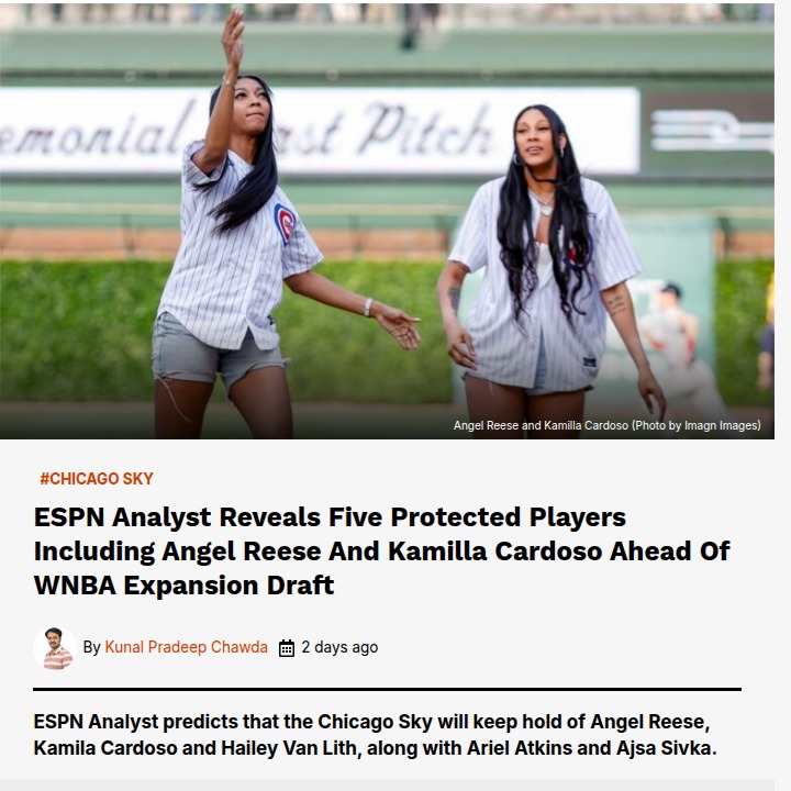 Patrick Gonzales+FollowSky’s Big Gamble: Will Angel Stay Loyal?With the WNBA expansion draft heating up, the Chicago Sky are making moves to keep their core intact—especially their star rookie Angel Reese and rising force Kamilla Cardoso. ESPN’s Kevin Pelton expects the Sky to use their five protected slots on Reese, Cardoso, Van Lith, Atkins, and Sivka. The real drama? Reese’s recent comments have sparked trade rumors, but the front office is doubling down on keeping her happy. Will this strategy pay off, or are we in for a blockbuster move? #Sports #Basketball #WNBA11Share