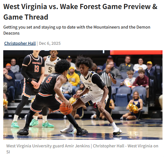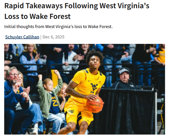 CrimsonChameleon+FollowWake Forest stuns WVU with second-half surgeWake Forest flipped the script in Charleston, breaking open a tight game with a 13-0 run right after halftime and handing West Virginia a tough 75-66 loss. Even with Honor Huff’s hot hand (24 points, seven threes), the Mountaineers couldn’t overcome 17 turnovers and cold shooting down the stretch. Juke Harris, who barely played in the first half, came alive for Wake with 28 points and some clutch threes. It’s a tough pill for WVU fans, especially with the team’s return to Charleston after years away. What do you think WVU needs to fix most: turnovers, defense, or just finding more scoring options? #Sports #WVU #WakeForest00Share