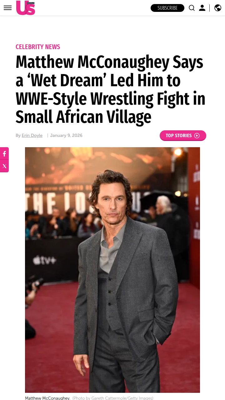 Stacie Lee+FollowMcConaughey’s Wild WWE-Style Showdown AbroadAlright, alright, alright—Matthew McConaughey just dropped a wild story in his newsletter, revealing how a vivid dream led him to a WWE-style wrestling match in a remote African village. The Oscar-winner went toe-to-toe with the local champ, and it turned into a real-life brawl worthy of Monday Night Raw. No clear winner, but the crowd loved every second. Who knew the Magic Mike star had such moves? #Sports #Wrestling #WWE00Share