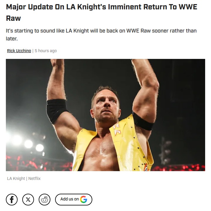 Daniel Peterson+FollowLA Knight Backstage at WWE Raw Germany!Big news for WWE Universe—The Megastar, LA Knight, is reportedly backstage at Raw in Dusseldorf after a month-long absence. Fans still remember that brutal beatdown from The Vision, which had many questioning Knight’s future. With talent rarely flown to Europe unless they’re in the plans, could we see Knight make a surprise return tonight? Is this the start of a new rivalry or redemption arc? Sound off, Knight fans! #Sports #Wrestling #WWE00Share
