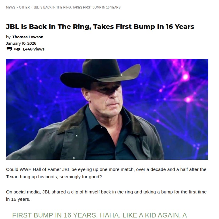 Stephanie Bailey+FollowJBL Teases WWE Comeback After 16 Years!Wrestling fans, did you catch JBL’s latest post? The Wrestling God himself just took his first bump in 16 years, sparking rumors of a possible return to the squared circle. Last time we saw JBL in serious action, he dropped the IC Title to Rey Mysterio at WrestleMania 25. Could we see him lace up the boots for one more match? Let’s hear your dream opponents for JBL’s big comeback! #Sports #Wrestling #WWE20Share