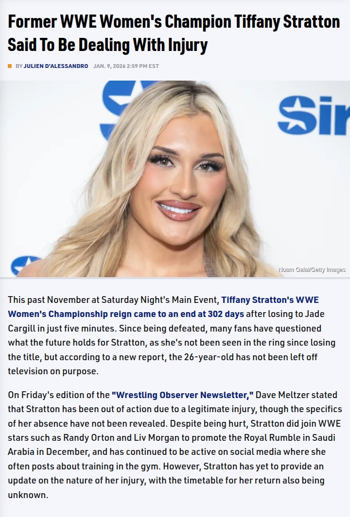 reneewang+FollowStratton’s Shock Loss: Was Injury the Real Story?Tiffy Time fans, what do you make of Tiffany Stratton’s sudden 5-minute loss to Jade Cargill that ended her epic 302-day reign? Now we hear from Meltzer that Stratton’s been sidelined with a legit injury, but details are hush-hush. Was Cargill’s dominant win always the plan, or did Stratton’s injury force WWE’s hand? With Royal Rumble rumors swirling, will we see the Buff Barbie back in the ring soon? #Sports #Wrestling #WWE40Share