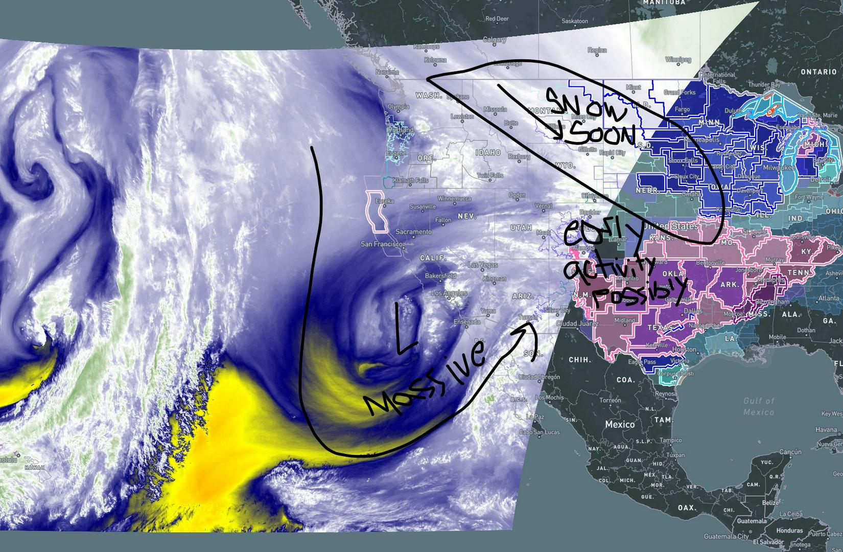 National Weather Forecast+FollowShort Wave Trough Injector to the southwest, with the soon amplified Jet we will see a spread of snow tonight through the (snow soon area), While it looks like the Winter Storm even Could get an earlier start tomorrow Morning the 23rd. I want to make myself clear things are on schedule how the dynamic patterns are moving. Remember travel will be highly impacted, and power outages will be an issue. Have everything you need as soon as possible. Avoid being out if you can, If you have to work outdoor and its mandatory, safety is priority no matter what, make sure you don't put yourself in harm's way. #uswx #spc #WinterStormWarning 50Share