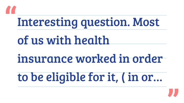 Interesting question. Most of us with health insurance worked in order to be eligible for it, ( in order to get it ), with varying degrees of contributions and participation from our employers. That system always seemed to work just fine. Of course, once you become ill, ( depending on the nature and severity of your illness ), working may no longer be possible, either temporarily or permanently. The problem is this question is indelicate. It almost suggests that people, who may already have preexisting conditions, who additionally have no health insurance, and aren't working, may have to begin working to acquire health insurance. The answer to that would depend upon the nature and severity of their preexisting condition. Got to qualify for coverage somehow. Pay for it outright, ( who can afford that )? Or, trade your labor, ( a job ), for health insurance. The way it's always been done.