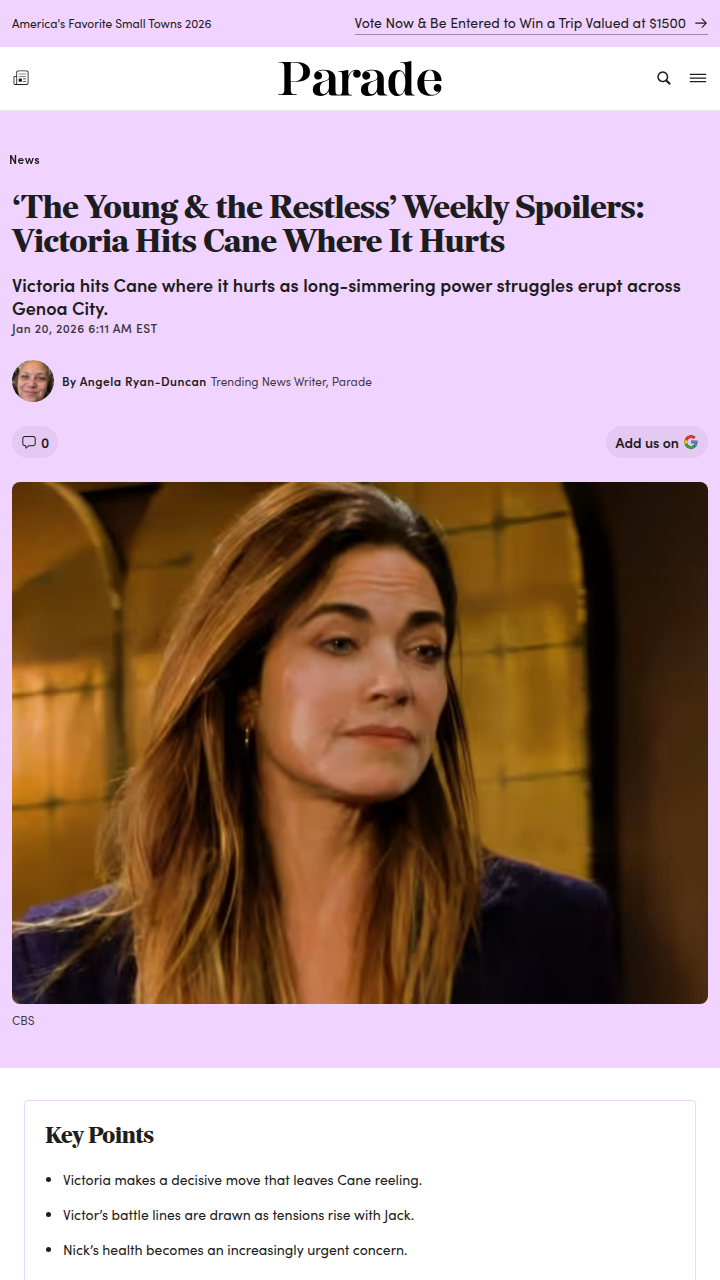 Ryan Massey+FollowVictoria’s Savage Move Shocks Genoa City 😱Victoria just took her feud with Cane to a whole new level—did anyone see that coming? Her latest power play totally blindsided him and now fans are split: was she justified or did she go too far? Meanwhile, Nick’s health is spiraling and Victor’s got his own drama brewing. Are alliances about to explode? This week is wild! #Entertainment #TVSeries #YR270Share