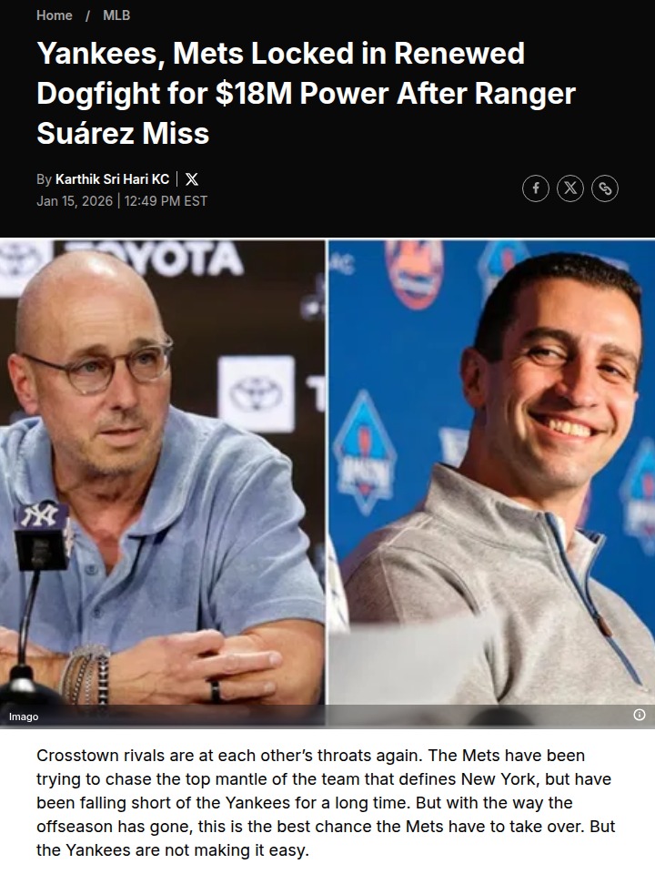 Cassandra Reed+FollowNY baseball’s $200M pitching showdownThe Yankees and Mets are locked in a fierce battle for ace Framber Valdez, and this could reshape New York baseball for years. Both teams need a reliable workhorse after missing out on Ranger Suárez, and Valdez’s 192 innings and 3.66 ERA last season make him the hottest ticket in town. The Mets crave stability after last year’s collapse, while the Yankees are scrambling with rotation injuries. Whoever lands Valdez could tip the city’s baseball balance—unless the Yankees pivot to Freddy Peralta. Which team do you think needs Valdez more, and how would this move change the rivalry? #Sports #Baseball #Yankees00Share