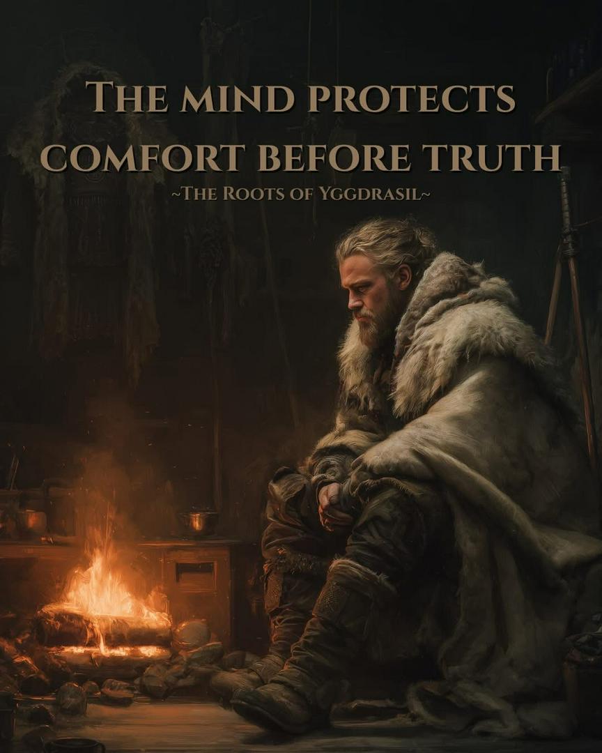 The mind is not loyal to truth. It is loyal to stability. Comfort is familiar, predictable, and keeps the world from shifting beneath your feet. So the mind edits reality and softens warning signs. Comfort reframes failure while inventing reasons to stay still. Most lies are not spoken aloud. They are rehearsed silently until they feel reasonable. If a thought makes you feel immediately safe, inspect it. Truth often arrives with friction. Growth feels threatening because it threatens comfort. The mind resists change not because it is wrong but because it is inconvenient. Listen closely to the explanations you use to avoid action. That is where comfort is being defended. Truth does not need protection. Comfort does. Today the mind still protects comfort long before it protects truth. In a world built on convenience, the first battle is noticing when your own thoughts are working against your growth. Question the explanations that make inaction feel justified and treat instant reassurance as a warning, not a reward. Pay attention to when you’re defending a habit instead of evaluating it. Take heed to the stories you tell yourself to avoid discomfort. Let friction signal where change is trying to happen. Self‑deception is subtle because it feels safe. But safety without honesty becomes stagnation. Growth begins the moment you stop accepting every thought as a fact and start treating it as information to be tested. Your mind’s first loyalty is stability. Your task is to choose truth anyway... “The mind protects comfort before truth.” ~The Roots of Yggdrasil~ #norsepagan #yggdrasil #HardTruth #asatru #selfdeception #heathen