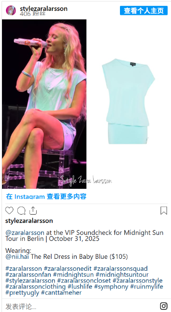 Michael Weiss+FollowZara Larsson’s $105 Dress Is a Total StealZara Larsson just proved you don’t need to drop big bucks to look like a pop star. She rocked a baby blue minidress at her Berlin show that’s only $105—yes, really! The off-shoulder number from NiiHAi is giving major cool-girl vibes, and fans are obsessed. Between her dreamy hair and that pink mic, she’s serving effortless glam. Who else is adding this to their cart? #Beauty #ZaraLarsson #StyleSteal10Share