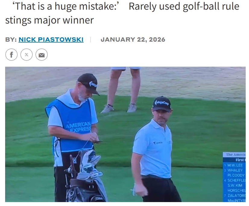 Ryan Wilkinson+FollowGolf Rule Blunder Costs Harman Big TimeOuch, Harman fans—Brian just got stung by one of golf’s rarest rules! On the 10th at the Stadium Course, Harman hit a beauty... but it was the wrong ball. That meant a two-stroke penalty and a double bogey, all thanks to a mix-up with an amateur’s ball. Even with his custom Sharpie mark, it slipped by. Has anyone seen a pro get hit by Rule 6.3c like this before? Brutal way to start the American Express! #Sports #Golf #GolfRules00Share