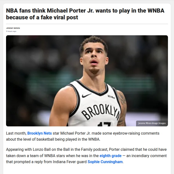 Ryan Lopez+FollowMPJ's WNBA 'Record' Talk: Real or Satire?So, NBA Twitter went wild after a viral post claimed Brooklyn's own MPJ said he wanted to join the WNBA to break Wilt's 100-point record. Turns out, it was just @TheNBACentel doing their parody thing. Still, after MPJ's spicy podcast takes, fans are debating if he’d actually say something like that! Meanwhile, the guy is balling out for the Nets, averaging a career-high 25.6 PPG. What do you think—would MPJ ever try to chase a record like Wilt’s in the W? #Sports #Basketball #NBA00Share