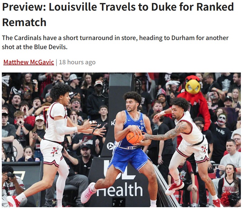 AmberAbyss+FollowLouisville faces Duke in high-stakes rematchLouisville heads to Durham for a showdown with No. 5 Duke, looking to snap the Blue Devils’ 26-game home win streak. The Cardinals have been lighting it up from deep—Isaac McKneely leads all DI players in career 3-pointers made among 41% shooters, and the team has racked up multiple 40+ point wins this season. Duke, meanwhile, boasts Cameron Boozer, the nation’s top scorer, and a defense that just held Wake Forest scoreless for nearly eight minutes. Can Louisville’s hot shooting shake up the ACC power balance, or will Duke’s home dominance continue? #Sports #Louisville #Duke00Share