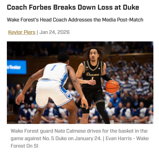 Amy Tanner+FollowWake Forest’s tough day at Duke: What’s next?Duke absolutely dominated Wake Forest in the paint, racking up three times as many points inside and grabbing 11 more second-chance points. Coach Forbes didn’t sugarcoat it—he called out his team’s struggles with defensive assignments and hustle for loose balls, saying it’s both demoralizing and embarrassing. Still, there were bright spots: Cameron Boozer looked every bit the future NBA star, and Juke Harris kept Wake in the fight with five threes. Forbes says changes could be coming, especially if the guards don’t step up. How do you think Wake Forest can turn things around? #Sports #Basketball #WakeForest00Share