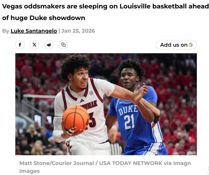 CrimsonChameleon+FollowLouisville fans fired up over Duke oddsVegas is seriously underestimating Louisville basketball as they gear up for a massive showdown with Duke. Despite getting their star point guard Brown back—who just dropped 20 points in his return—the Cardinals are 7.5-point underdogs and given only a 22.7% chance to win. Last time these teams met, Louisville actually led at halftime before falling apart late. With Brown back and the team on a roll, it feels like the Cards are being slept on. Are the oddsmakers missing something, or is Duke just that good? How do you see this one playing out? #Sports #LouisvilleBasketball #Duke00Share