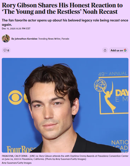 Caitlyn Morrow+FollowNoah Recast: Rory Gibson Spills the Tea 🍵Rory Gibson just gave his honest take on 'The Young and the Restless' recasting Noah with Lucas Adams, and fans are buzzing! He’s totally supportive but admits he’s dying to see what happens with Noah and Audra—especially since their story was left hanging. Some fans think the new Noah could shake up old relationships, while others wonder if Gibson’s support is just PR. Is this the start of a new Y&R era or will fans miss Rory’s version? #Entertainment #TVSeries #YR8523Share