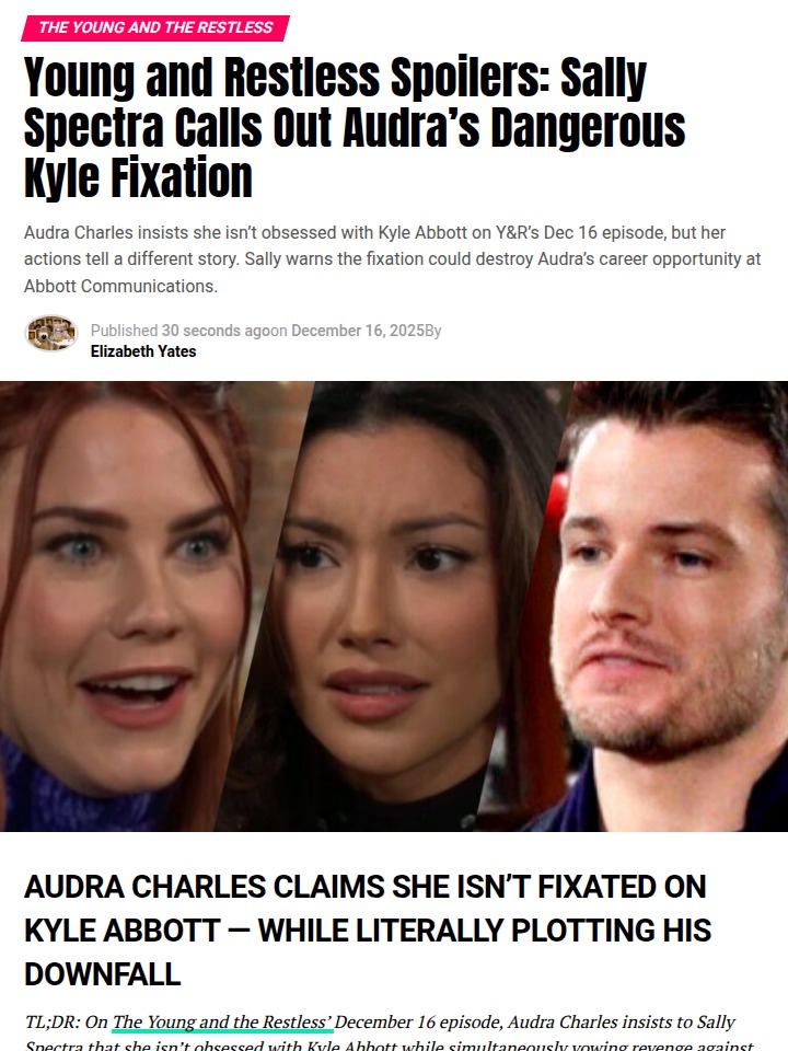 tmendez+FollowAudra’s Kyle Obsession Spirals Out! 😳Audra Charles is out here swearing she’s over Kyle Abbott, but literally every scene is her plotting his downfall! Sally Spectra tried to warn her that this fixation could blow her shot at Abbott Communications, especially with Jill Abbott making moves behind the scenes. But Audra’s denial is Olympic-level—she even slapped Claire Grace Newman and then claimed she’s “moved on.” Is Audra about to self-destruct and lose everything, or will she actually pull off a comeback? Drop your theories! #Entertainment #TVSeries #YR00Share