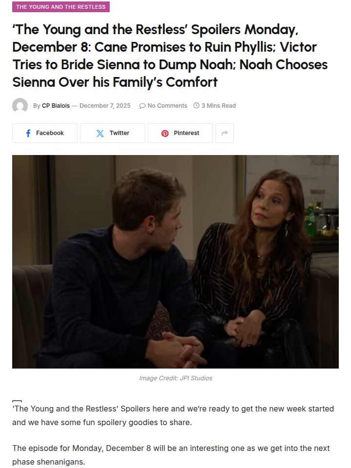Eric Mueller+FollowCane vs Phyllis: Betrayal Incoming? 😱Cane is DONE playing nice with Phyllis and is threatening to ruin her after she refuses to confess. Meanwhile, Victor is up to his old tricks, trying to bribe Sienna to dump Noah, but Noah shocks everyone by choosing Sienna over his family. Is this the end of the Newman family unity? The fandom is split—some say Noah’s finally grown up, others think he’s making a huge mistake! #Entertainment #TVSeries #YR111Share