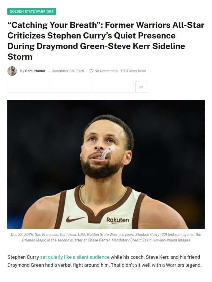 Patrick Gonzales+FollowSteph Curry’s silent moment sparks debate for Warriors fansWhen Draymond Green and Steve Kerr got into a heated sideline argument, Steph Curry stayed on the bench, quietly watching it all unfold. That choice didn’t sit right with Warriors legend Tim Hardaway, who called out Curry for not stepping up as the team’s leader in the moment. Instead, it was Moses Moody who tried to calm things down. Even though Curry later dropped 26 points and the Warriors won big, fans are now split: Should Steph have intervened, or was he right to focus on the game? How much does visible leadership matter in these tense moments? #Sports #Basketball #Warriors10Share